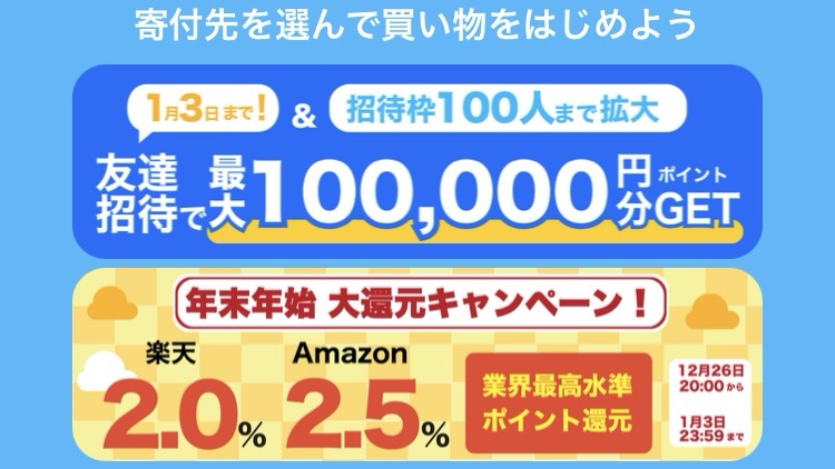 【ポイ活】1000円貰える!ゼロ円寄付アプリ ギバース 年末年始大還元&友達招待キャンペーン ポイ活 2026.01.012026.01.12 Amaon→2.5% 楽天→2% Qoo10→0.5%還元さらに紹介コードZZaCSUaQを入力&税抜2000円以上の買い物で1000円! 紹介コードをコピーする ZZaCSUaQ アプリDLはこちら