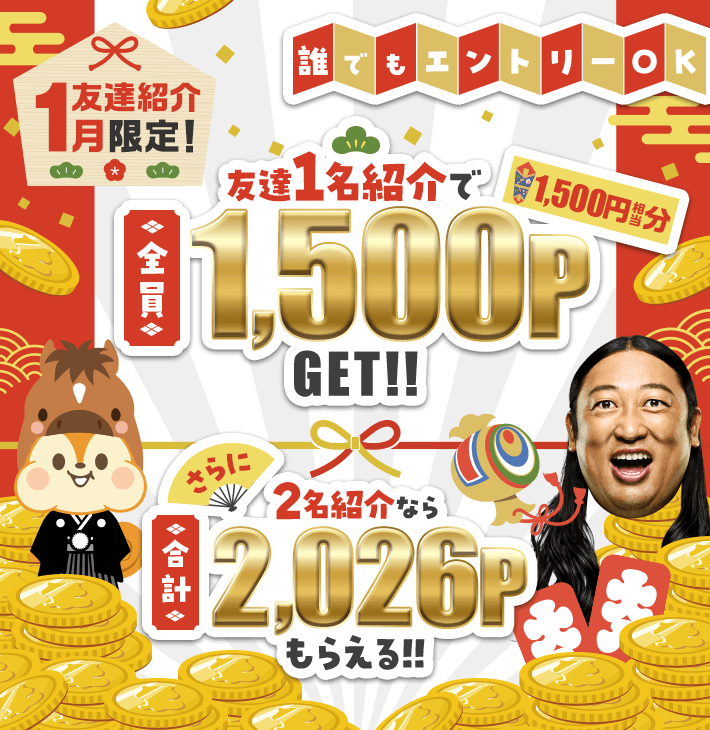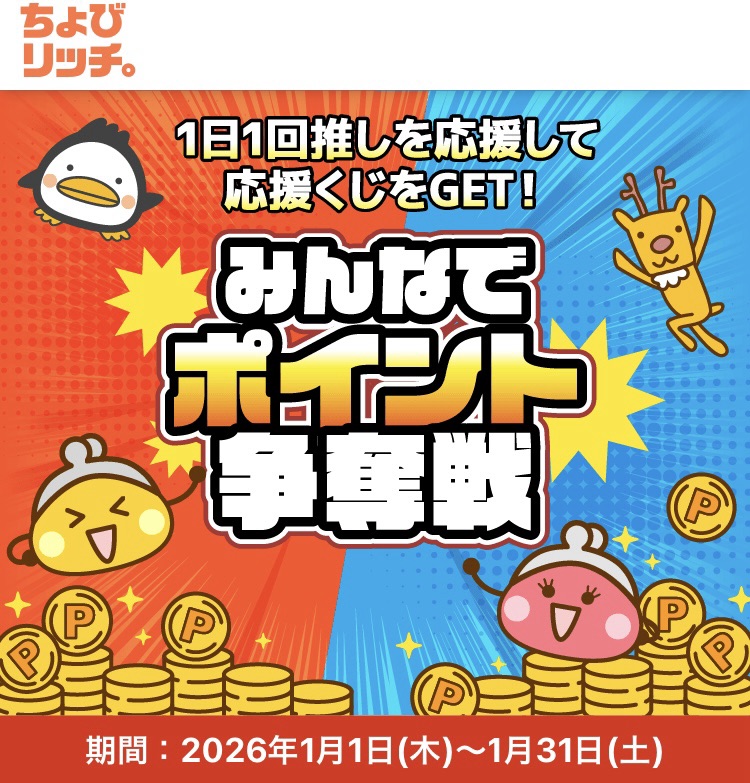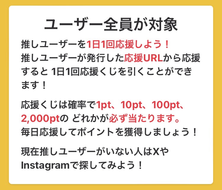 ・1日1回応援くじを引いて1〜2000Pが必ず当たる